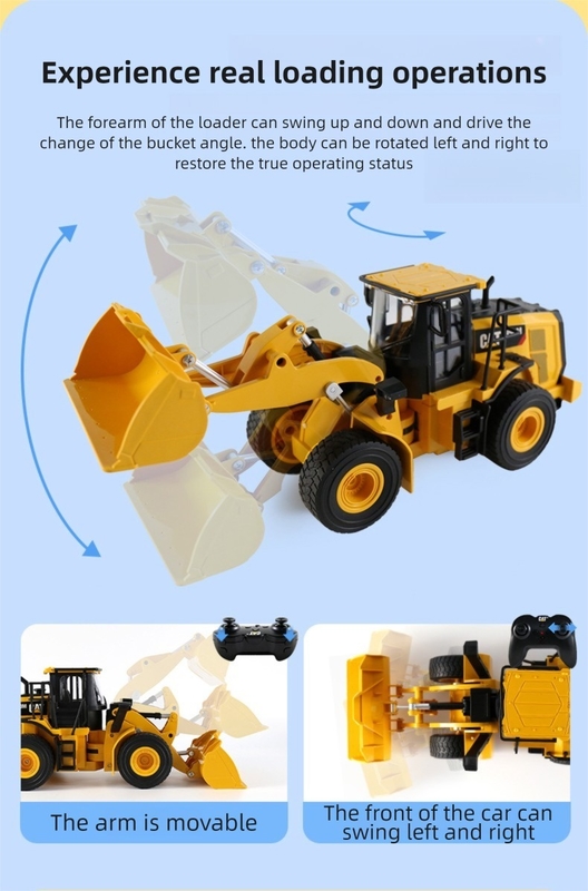 สร้างขึ้นด้วยวัสดุที่ทนทาน รถตักขนาด 1:24 นี้สร้างขึ้นเพื่อให้ทนทานต่อการเล่นอย่างกระตือรือร้น การออกแบบที่พิถีพิถันของมันจับภาพสาระสำคัญของรถก่อสร้างสำหรับงานหนัก โดยมีถังด้านหน้าแบบเคลื่อนย้ายได้ที่สามารถยกขึ้นและลดลงได้ เช่นเดียวกับรถตักของแท้ สีสันสดใสและสำเนียงที่ละเอียดอ่อนช่วยเพิ่มความน่าดึงดูดใจที่สมจริง จุดประกายจินตนาการและส่งเสริมสถานการณ์การเล่นที่สร้างสรรค์ ของเล่นนี้ทำงานด้วยแบตเตอรี่ไฟฟ้าแบบชาร์จไฟได้ ทำให้มั่นใจได้ถึงความสนุกสนานอย่างต่อเนื่องโดยไม่จำเป็นต้องเปลี่ยนแบตเตอรี่บ่อยๆ